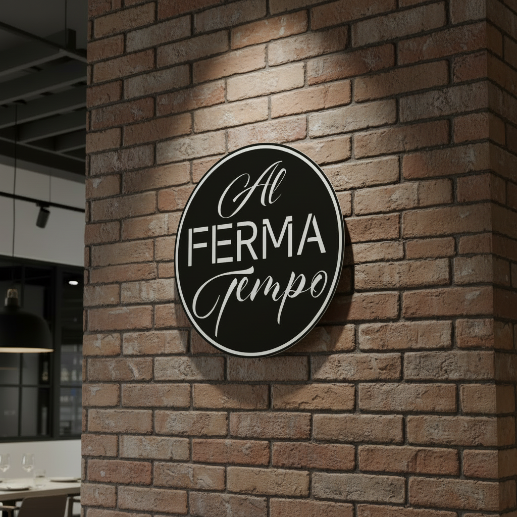 The logo for Al Ferma Tempo was designed to embody the meaning behind the name – “where time stands still.” Its form and typography convey a sense of elegance and pause, reflecting the restaurant’s warm and timeless atmosphere. By combining subtle details with a balanced structure, the logo serves as both a symbol of the brand’s identity and an invitation to slow down and enjoy the experience